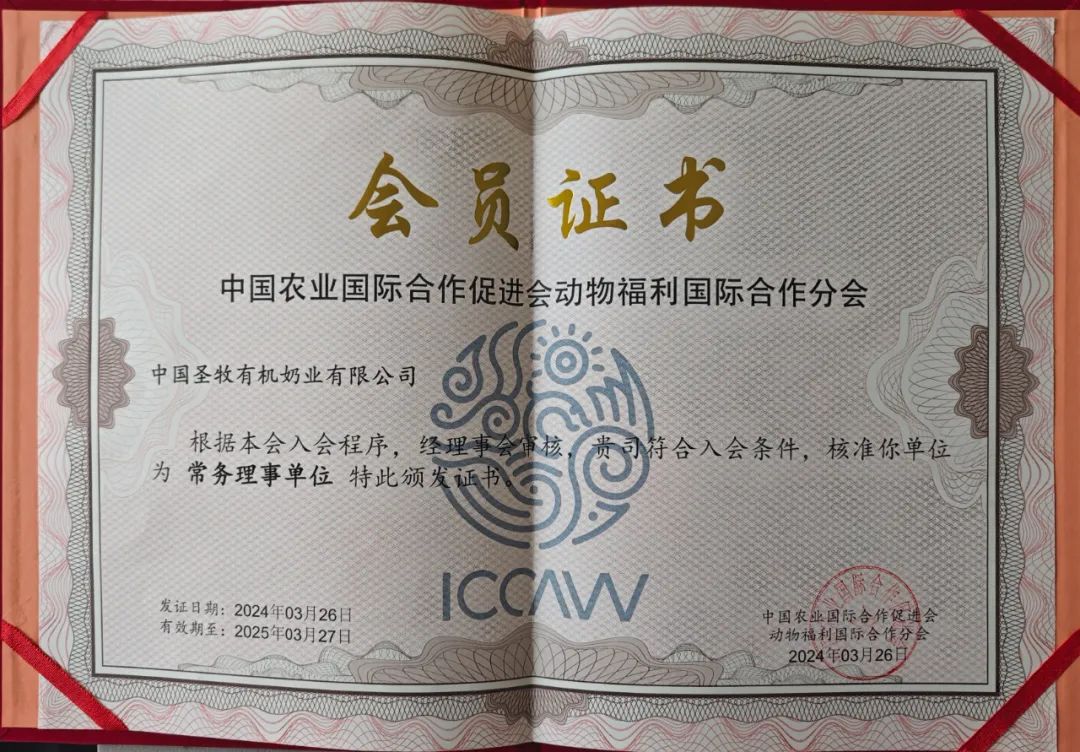 2024-05-20 11:47:41近日,中國圣牧加入中國農業(yè)國際合作促進(jìn)會(huì )動(dòng)物福利國際合作分會(huì )并成為常務(wù)理事單位。圣牧作為中國有機乳業(yè)的領(lǐng)軍企業(yè)一直倡導動(dòng)物福利,確保整個(gè)生產(chǎn)流程符合動(dòng)物福利標準。